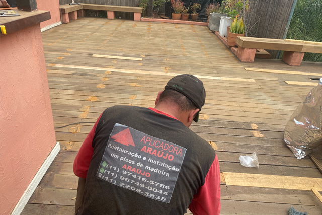 Instalação de Pisos de Madeira com Qualidade e Precisão Na Aplicadora Araújo, cada projeto é realizado com dedicação, técnica e acabamento impecável. Nossa equipe especializada garante que seu ambiente ganhe mais conforto, sofisticação e durabilidade com a instalação ideal para cada tipo de piso. Nossos serviços de instalação incluem: Instalação de pisos de madeira – elegância natural e resistência para qualquer ambiente. Instalação de assoalho – clássico e robusto, perfeito para quem busca um visual atemporal. Instalação de taco – versatilidade no desenho e acabamento, trazendo personalidade ao espaço. Instalação de deck – ideal para áreas externas, unindo beleza e funcionalidade. Instalação de piso pronto – praticidade e rapidez, sem abrir mão da sofisticação. Seja qual for o seu projeto, cuidamos de cada detalhe para que o resultado seja único e de longa durabilidade.